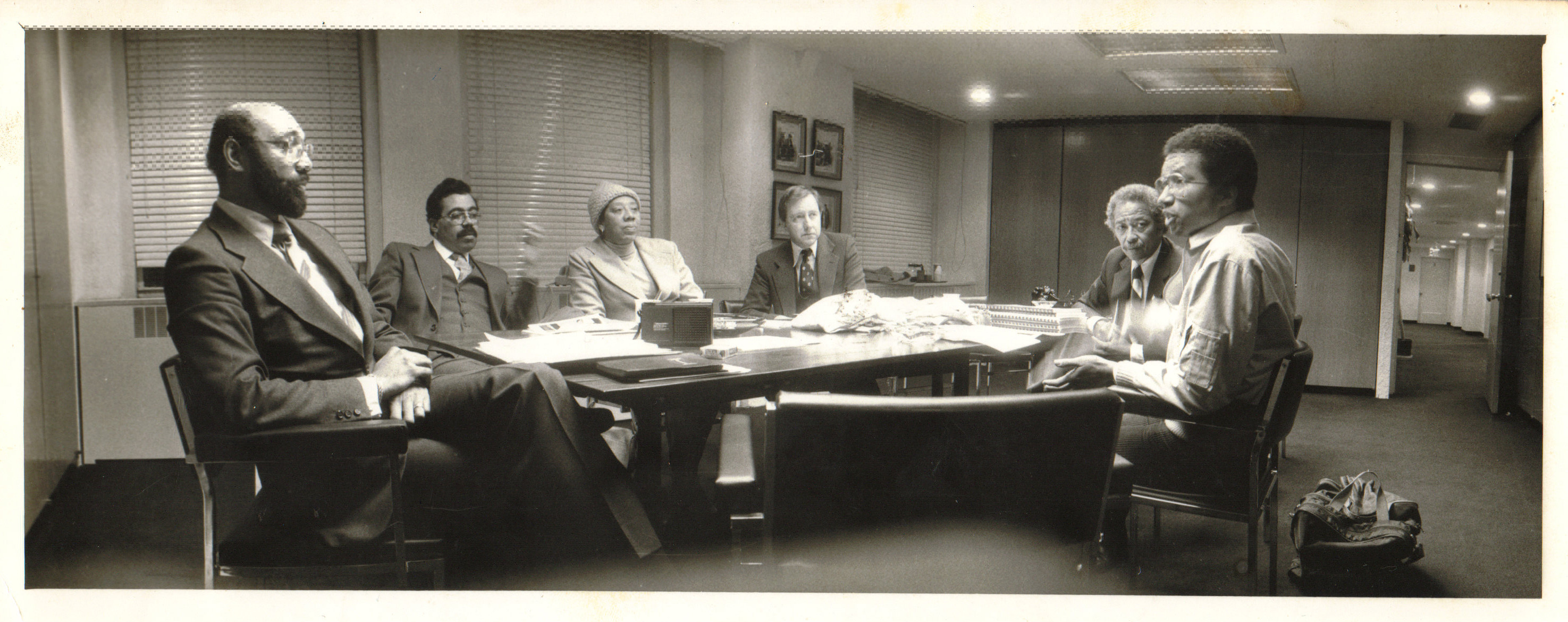 This photo was taken during the creation of the Black Tennis & Sports Foundation in the mid-1970’s. Shown from left to right are: President and Founder Augustus G. Jenkins,Director of Tennis, Bob Davis, Director Althea Gibson, Foundation Attorney, A. Chandler Warren, Director Mayor David Dinkins and Chairman Arthur Ashe Jr.. |
